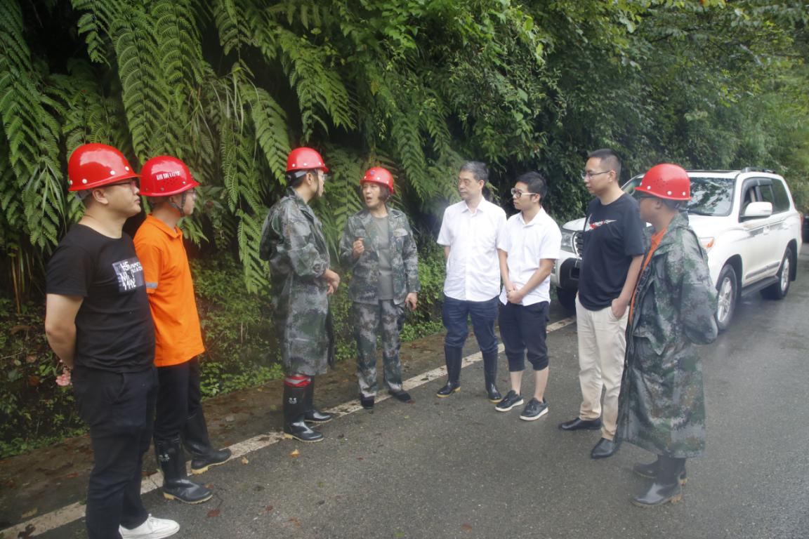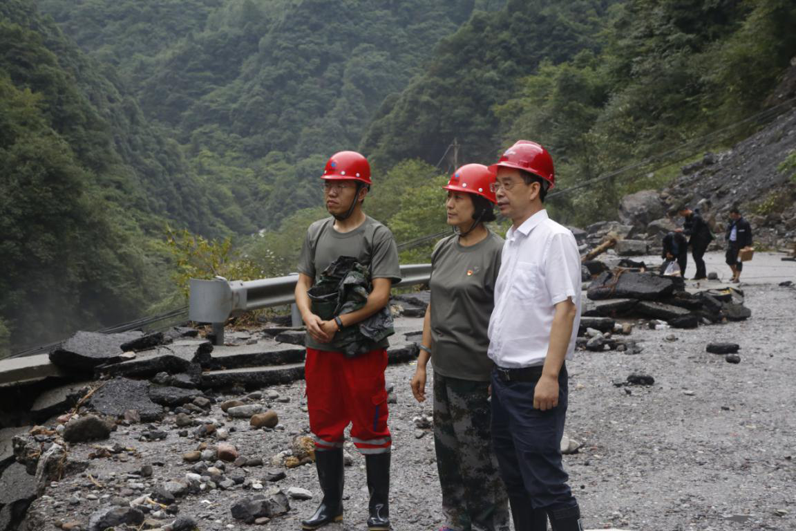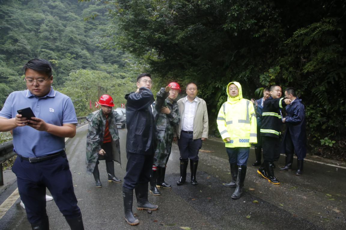 21日大邑縣縣委書記李燎等領(lǐng)導(dǎo)現(xiàn)場(chǎng)查看道路損毀情況