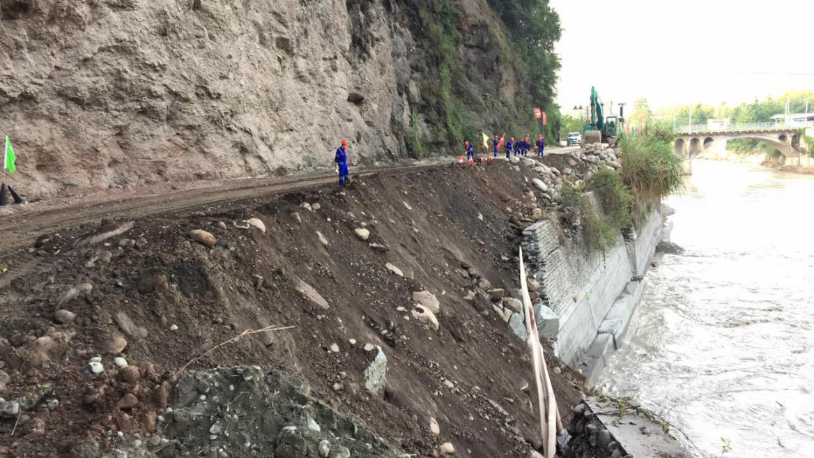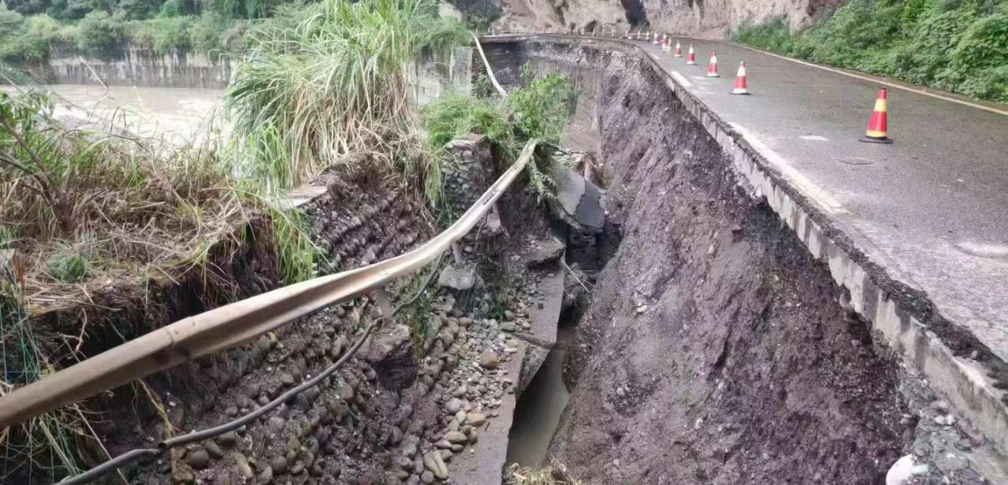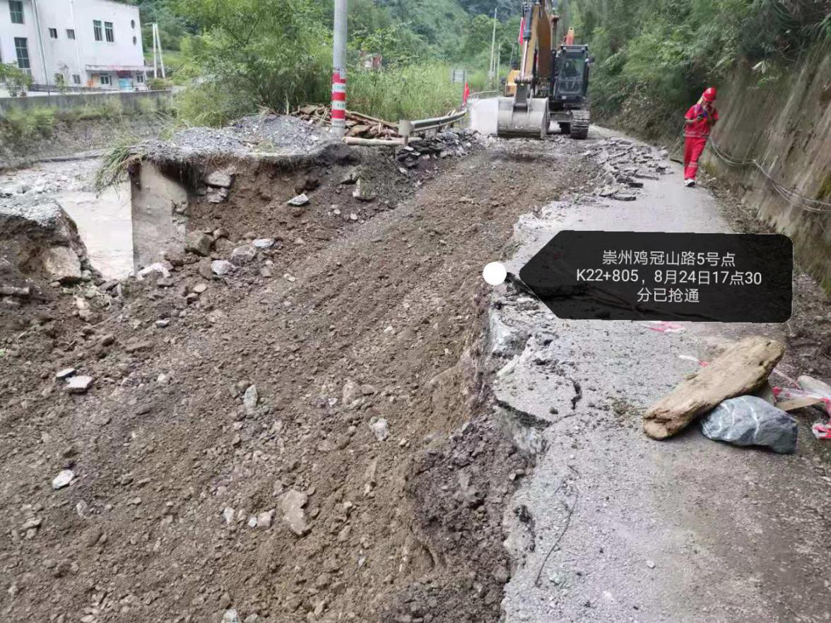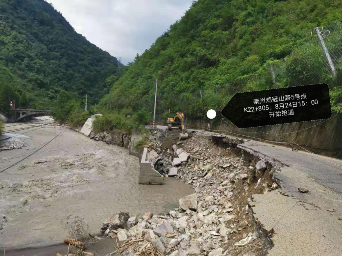 崇州市雞冠山路全長(zhǎng)近42公里,受此次強(qiáng)降雨影響,已探明其中31公里路段有24處斷點(diǎn),其中5處路基沖毀嚴(yán)重,有的路段半幅路基路面被山洪沖垮,有的路段路面懸空,有的路段全部被洪水沖毀。