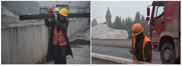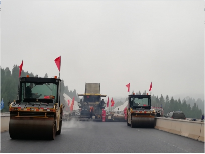 觀施工現(xiàn)場,華川旗幟高高飄揚(yáng),迎著微風(fēng),伴著小雨,1臺攤鋪機(jī)、5臺壓路機(jī)、15臺運(yùn)輸車相互密切配合,攤鋪、碾壓機(jī)器發(fā)出的聲響,奏出了一曲鏗鏘有力的“施工進(jìn)行曲”?,F(xiàn)場負(fù)責(zé)人及時查看攤鋪厚度,確保厚度在合理范圍內(nèi),技術(shù)員實(shí)時查看瀝青攤鋪溫度,項目部領(lǐng)導(dǎo)駐現(xiàn)場指導(dǎo),經(jīng)過各級人員的共同努力,精心組織、標(biāo)準(zhǔn)化,文明化施工,攜手完成了本次試驗(yàn)段鋪筑工作。