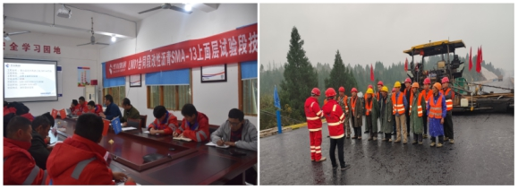 11月17日,在營達(dá)公司、營山代表處、監(jiān)理試驗(yàn)室、2駐地辦領(lǐng)導(dǎo)的關(guān)注及指導(dǎo)下,華辰公司營達(dá)LM01合同段完成瀝青SMA-13上面層試驗(yàn)段鋪筑工作,標(biāo)志著營達(dá)路面一標(biāo)進(jìn)入路面施工最后沖刺階段。