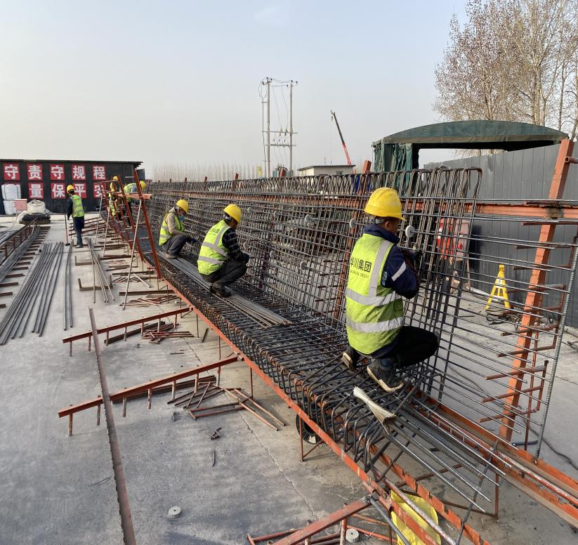 自2022年8月份開(kāi)工以來(lái),項(xiàng)目部本著“開(kāi)局就是決戰(zhàn),起步就是沖刺”的理念,優(yōu)化施工組織,科學(xué)部署,轉(zhuǎn)變管理思路,改進(jìn)管理方式,以賽促進(jìn)、以賽促干,激發(fā)活力。根據(jù)梁板預(yù)制工藝流程,組成了鋼筋下料加工、鋼筋綁扎、模板安裝、混凝土澆筑、養(yǎng)護(hù)張拉五個(gè)施工班組。各班組相互獨(dú)立,每道工序環(huán)環(huán)相扣,嚴(yán)格執(zhí)行“先自檢,后報(bào)檢”程序,這種班組化管理模式,大幅度提高了施工效率;同時(shí)嚴(yán)格執(zhí)行首件工程認(rèn)可制,貫徹“以工序保分項(xiàng)、以分項(xiàng)保分部、以分部保單位、以單位??傮w”的質(zhì)量創(chuàng)優(yōu)保障原則,以首件工程樣板示范,引領(lǐng)后續(xù)標(biāo)準(zhǔn)化施工,提高梁板預(yù)制水平和技術(shù)質(zhì)量管理水平。