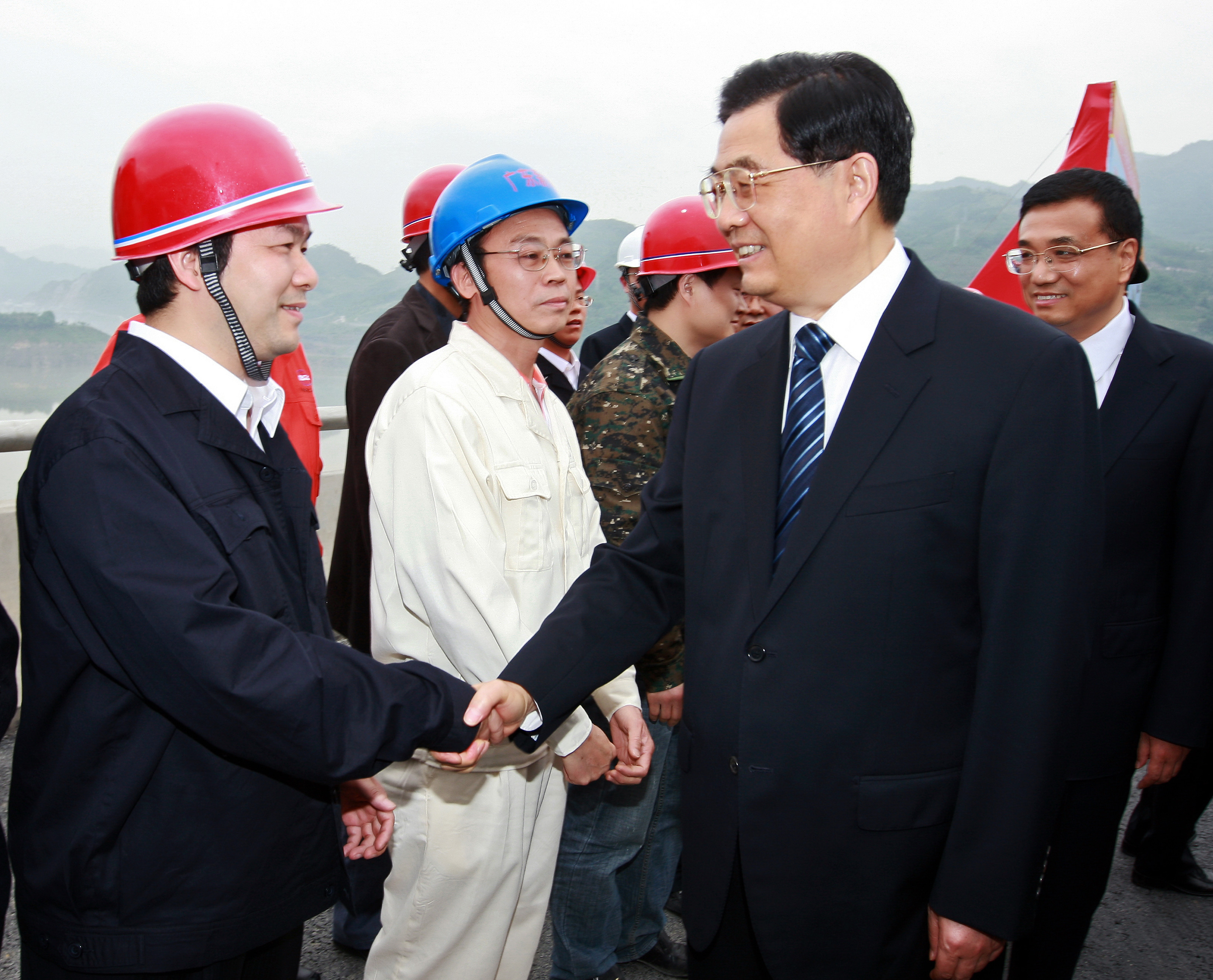 (2009年5月12日,胡錦濤總書記在參加“5.12”汶川大地震周年活動、視察災(zāi)后重建項目時,親切接見華川集團(tuán)董事長、總裁謝應(yīng)文)