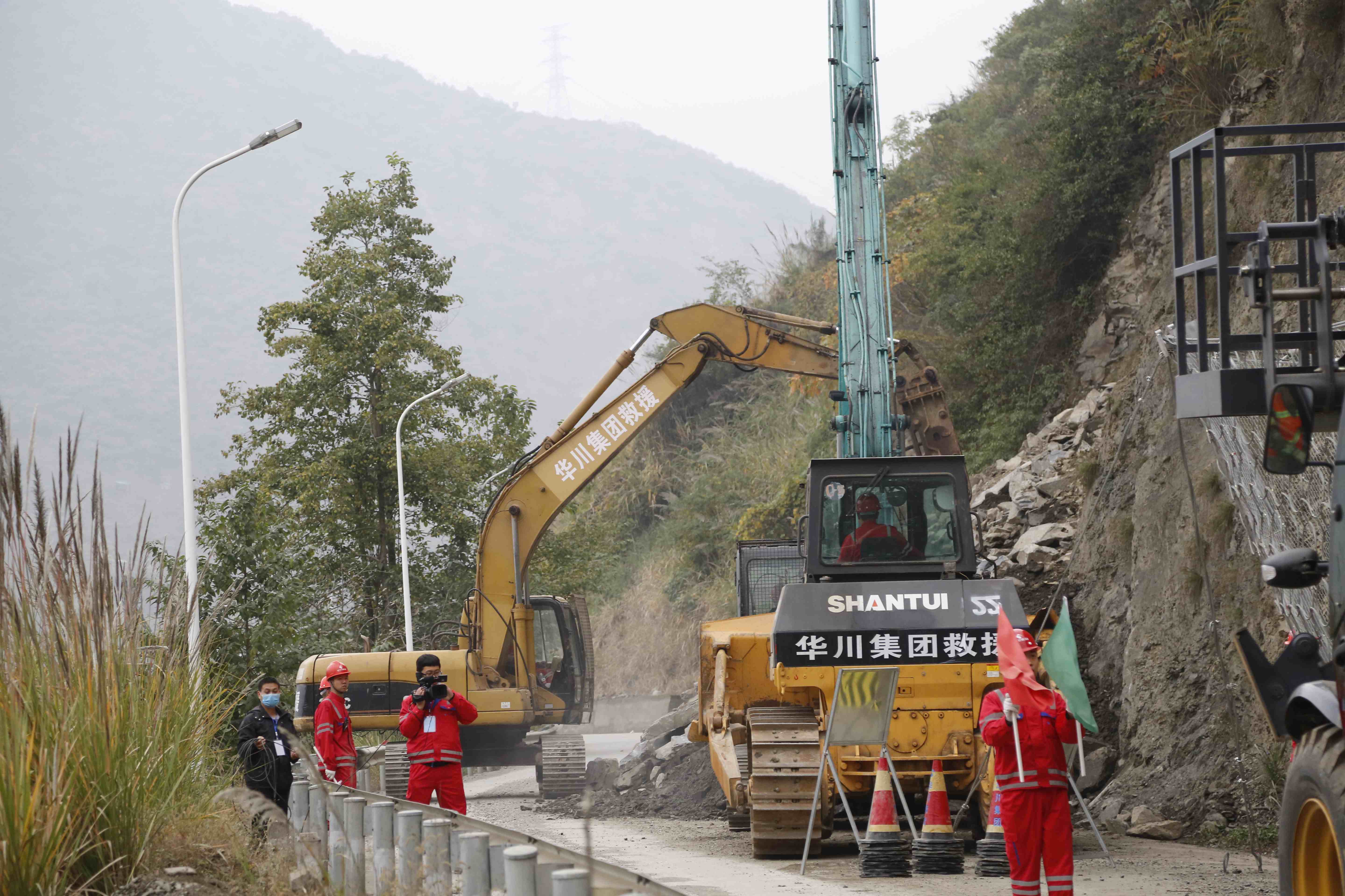 (華川集團(tuán)搶險救災(zāi)隊伍人員在“4.20”救災(zāi)一線)(集團(tuán)董事長謝應(yīng)文在寶盛大橋搶險加固現(xiàn)場接受采訪) (華川集團(tuán)在“4.20”抗震救災(zāi)一線)